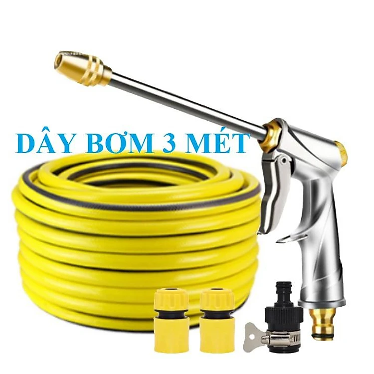 Bộ dây vòi xịt nước rửa xe,tưới cây .tăng áp 3 lần,loại 3m, 5m 206701-2 đầu đồng,cút,nói vòi đen+ tặng móc khoá