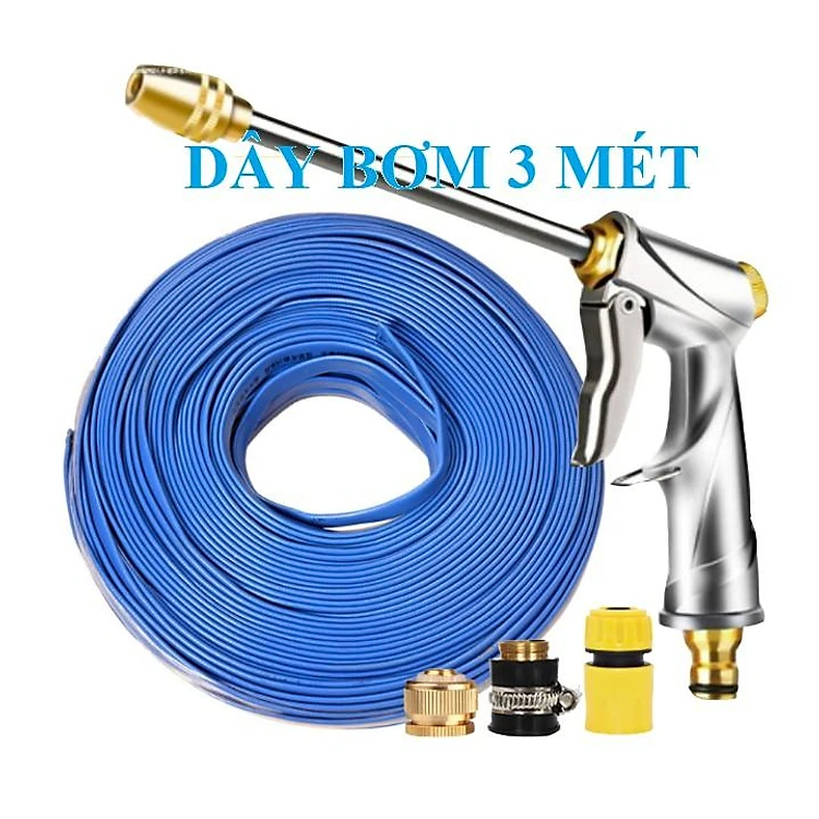 Bộ dây vòi xịt nước rửa xe,tưới cây .tăng áp 3 lần,loại 3m,5m 206701-2đầu đồng,cút,nối đồng+ tặng túi đựng bút