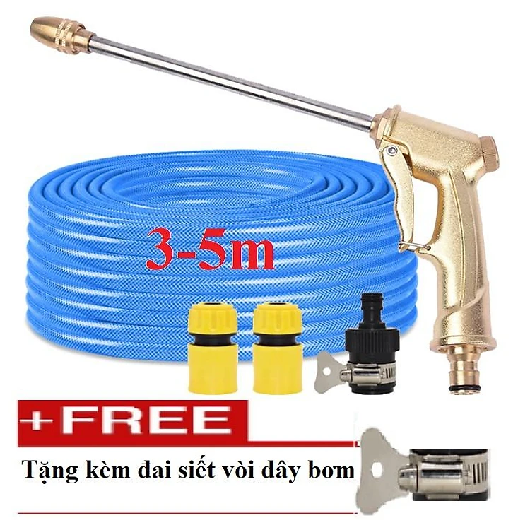 Bộ dây vòi xịt nước rửa xe, tưới cây . tăng áp 3 lần,loại 3m,5m 206701-3 đầu đồng,cút nối nhựa đen+ tặng đai