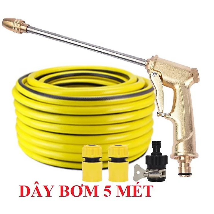Bộ dây vòi xịt nước rửa xe, tưới cây . tăng áp 3 lần,loại 3m,5m 206701-3 đầu đồng,cút nối nhựa đen+ tặng đai