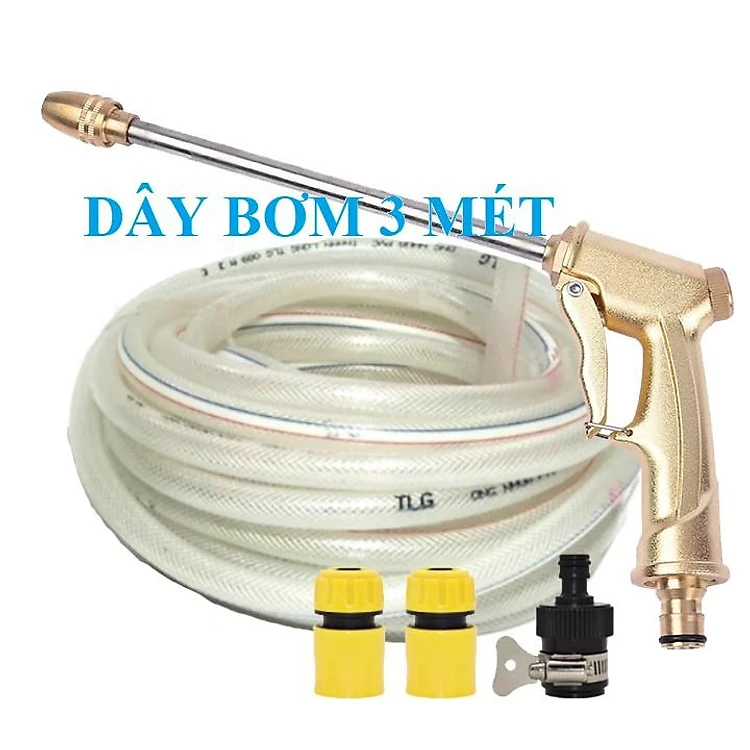 Bộ dây vòi xịt nước rửa xe,tưới cây . tăng áp 3 lần,loại 3m,5m 206701-3 đầu đồng,cút,nối nhựa đen+ tặng mở chai