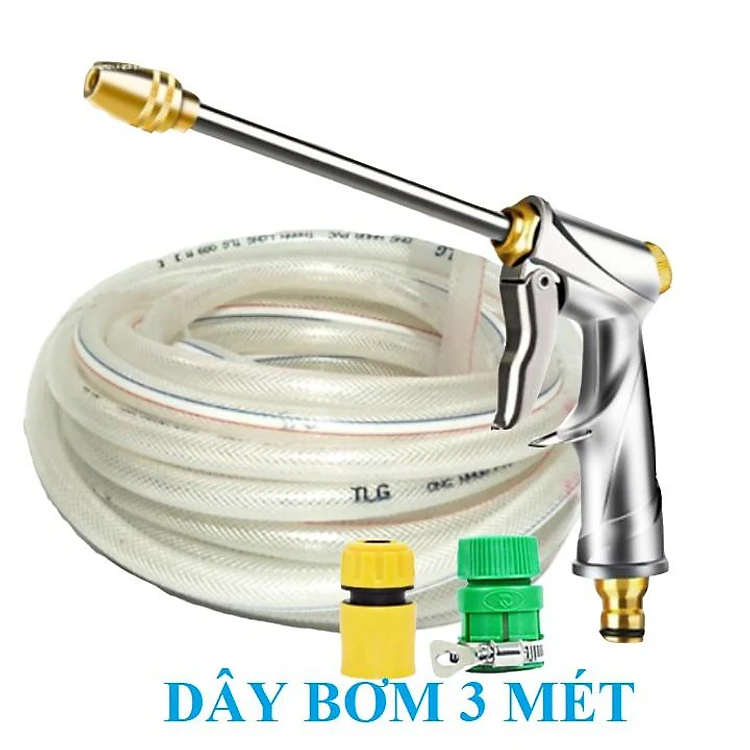 Bộ dây vòi xịt nước rửa xe, tưới cây .tăng áp 3 lần, loại 3m,5m 206701-Ađầu đồng,cút,nối nhựa v+tặng móc khoá