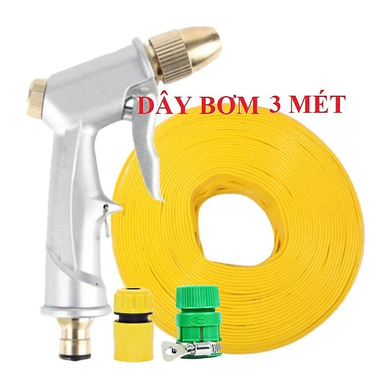 Bộ dây vòi xịt nước rửa xe,tưới cây .tăng áp 3 lần,loại 3m,5m 206701 đầu đồng,cút nối nhựa vàng+ tặng mở chai