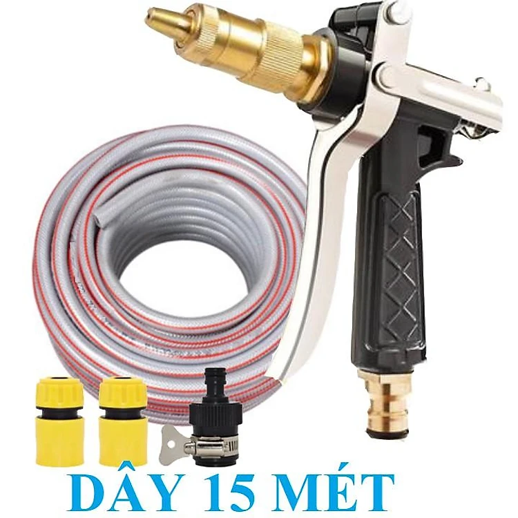 Bộ dây vòi xịt nước rửa xe, tưới cây , tăng áp 3 lần, loại 7m, 10m 206236 đầu đồng,cút,nối nhựa đen+ đai .