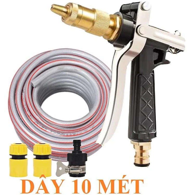 Bộ dây vòi xịt nước rửa xe, tưới cây . tăng áp 3 lần, loại 7m, 10m 206236 đầu đồng,cút,nối nhựa đen+ tặng đai
