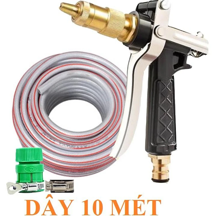 Bộ dây vòi xịt nước rửa xe, tưới cây . tăng áp 3 lần,loại 7m,10m 206236 đầu đồng,đai,nối nhựa v + tặng khăn phượt