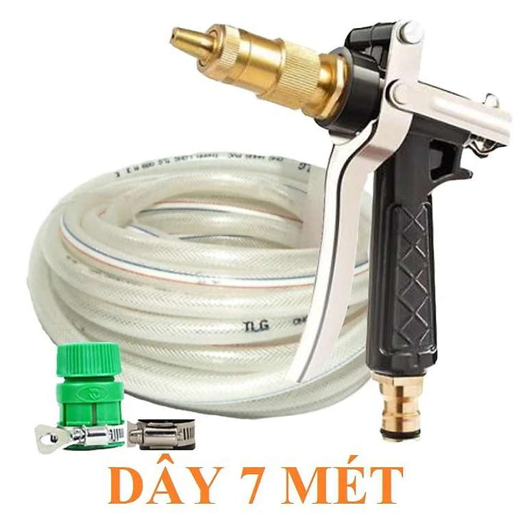 Bộ dây vòi xịt nước rửa xe, tưới cây .tăng áp 3 lần,loại 7m,10m 206236 đầu đồng,đai,nối nhựa v+tặng túi đựng bút