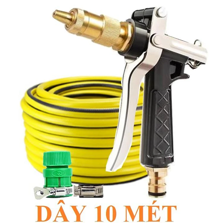 Bộ dây vòi xịt nước rửa xe, tưới cây . tăng áp 3 lần, loại 7m, 10m 206236 đầu đồng,đai, nối vòi,