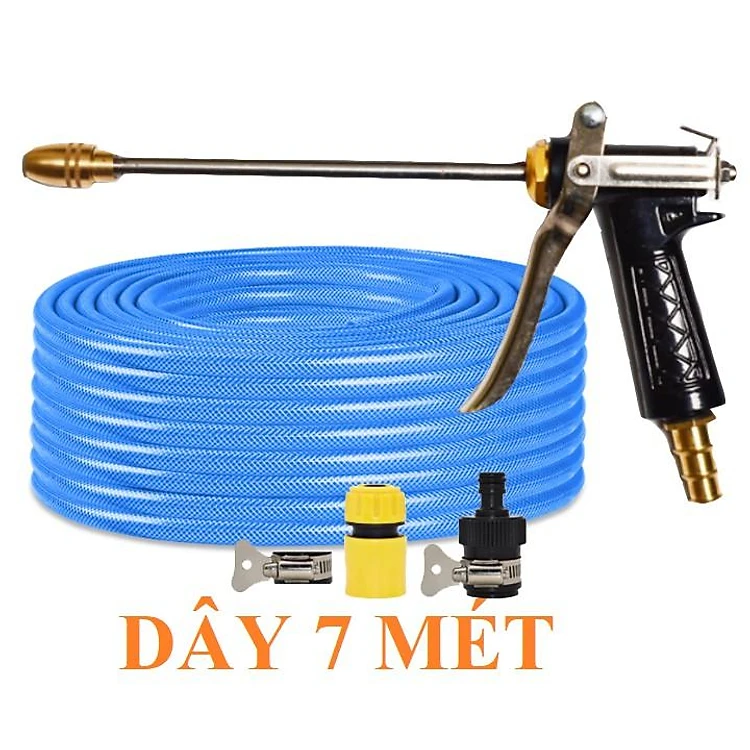 Bộ dây vòi xịt nước rửa xe, tưới cây . tăng áp 3 lần, loại 7m, 10m 206318 đầu đồng,đai,nối nhựa đen+ tặng đai