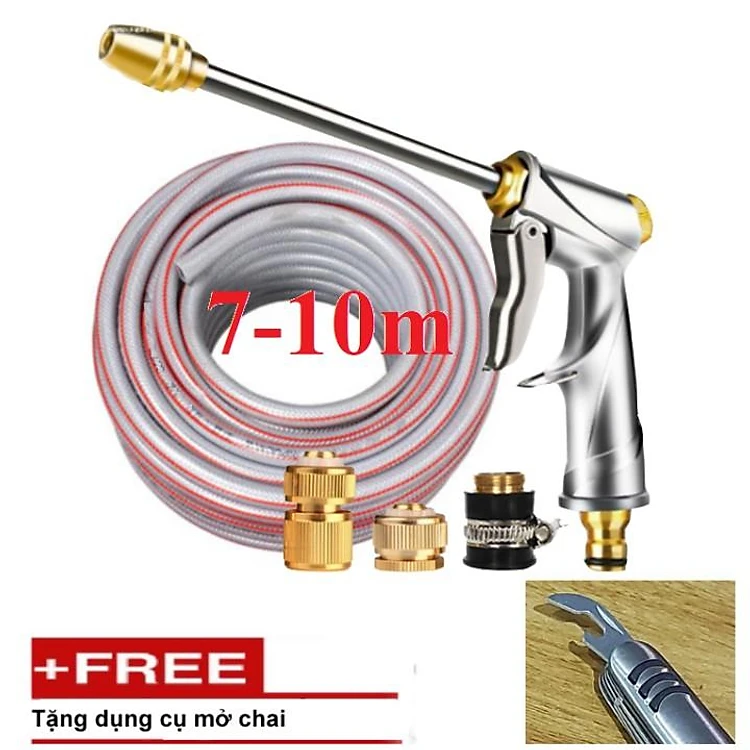 Bộ dây vòi xịt nước rửa xe, tưới cây . tăng áp 3 lần, loại 7m, 10m 206701-2 đầu đồng,cút đồng+ tặng mở chai