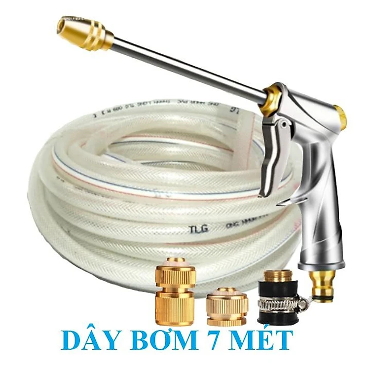 Bộ dây vòi xịt nước rửa xe, tưới cây . tăng áp 3 lần, loại 7m, 10m 206701-2 đầu đồng, cút đồng+ tặng túi đựng bút