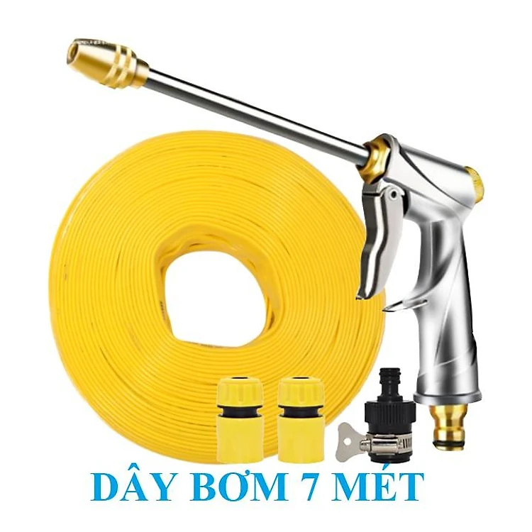 Bộ dây vòi xịt nước rửa xe, tưới cây . tăng áp 3 lần, loại 7m, 10m 206701-2 đầu đồng, cút, nối đen