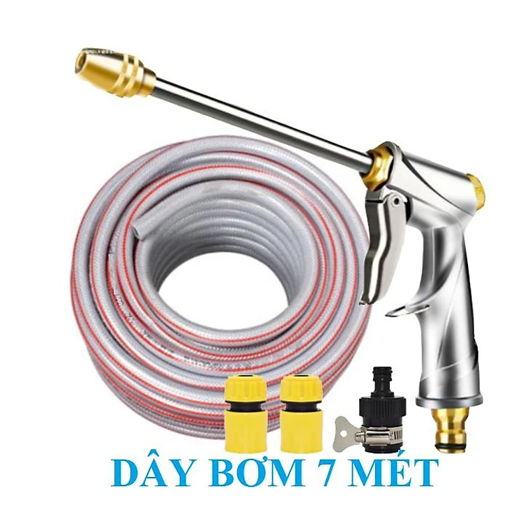 Bộ dây vòi xịt nước rửa xe, tưới cây . tăng áp 3 lần, loại 7m, 10m 206701-2 đầu đồng,cút,nối đen+ tặng móc khoá