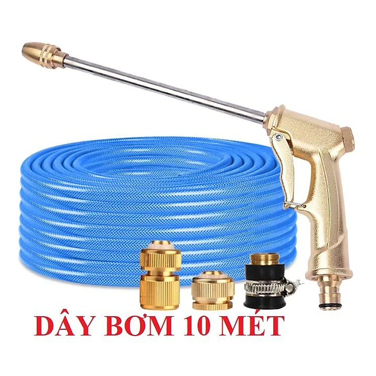 Bộ dây vòi xịt nước rửa xe, tưới cây . tăng áp 3 lần, loại 7m, 10m 206701-3 đầu đồng,cút đồng+tặng móc khoá