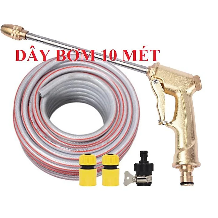 Bộ dây vòi xịt nước rửa xe, tưới cây . tăng áp 3 lần, loại 7m, 10m 206701-3 đầu đồng, cút+tặng khăn phượt