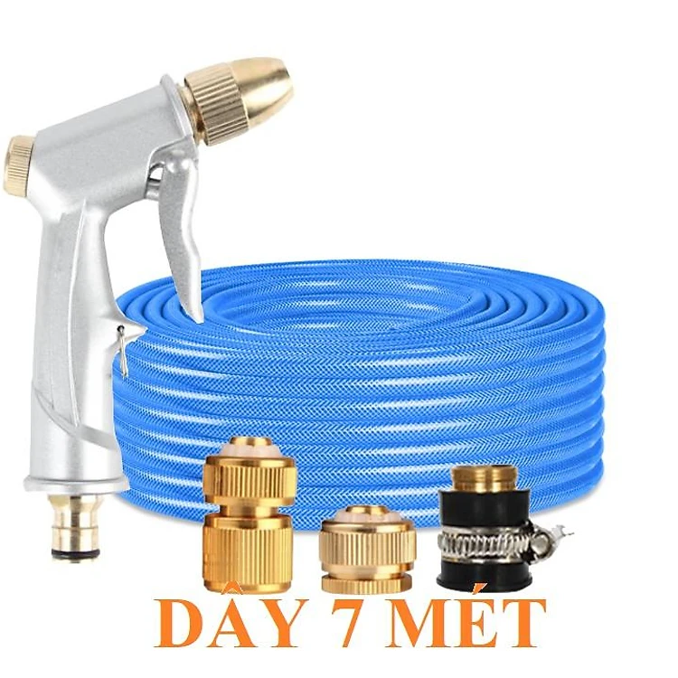Bộ dây vòi xịt nước rửa xe, tưới cây . tăng áp 3 lần, loại 7m, 10m 206701 đầu đồng, cút đồng
