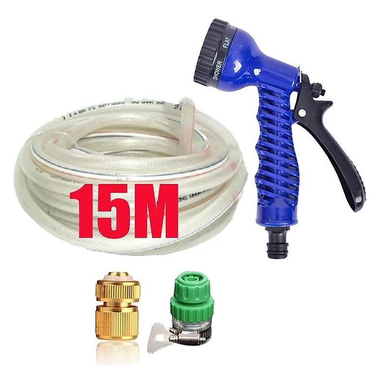 Bộ dây vòi xịt rửa xe, tưới cây, dọn dẹp nhà cửa 15m (cút đồng nối nhựa xanh) 206843