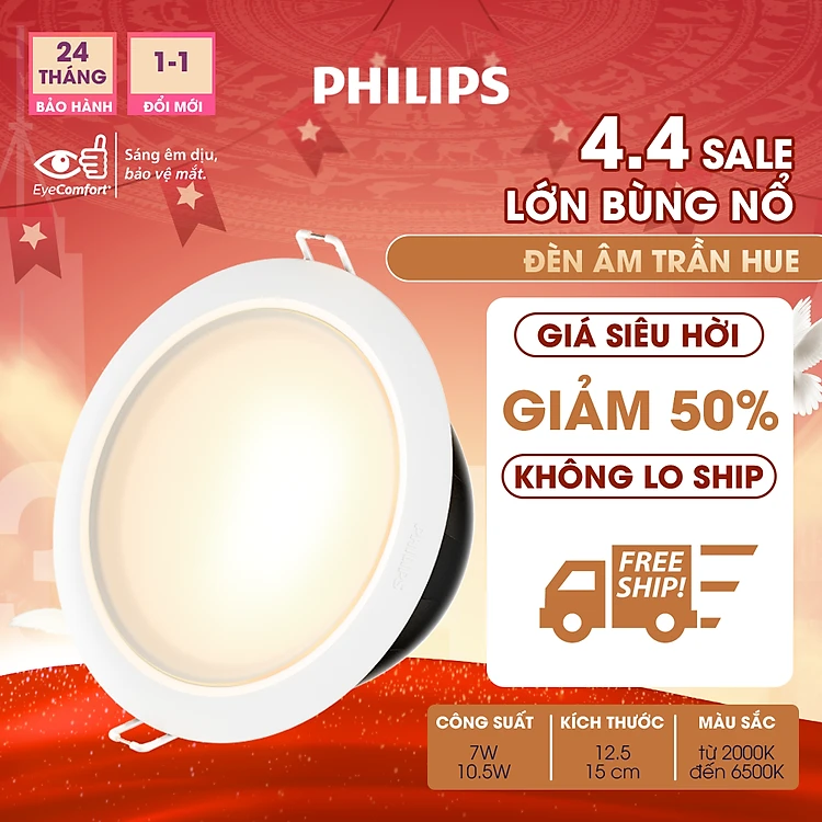 Bộ đèn âm trần Philips Hue Downlight – Garnea 7W D125 / 10.5W D150