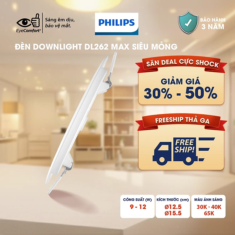 Bộ đèn âm trần Philips LED Max DL262 Max siêu mỏng- công suất (9W, 12W)