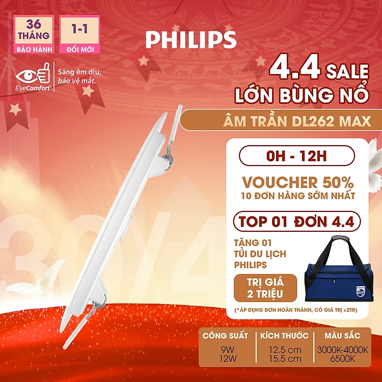 Bộ đèn âm trần Philips LED Max DL262 Max siêu mỏng- công suất (9W, 12W)