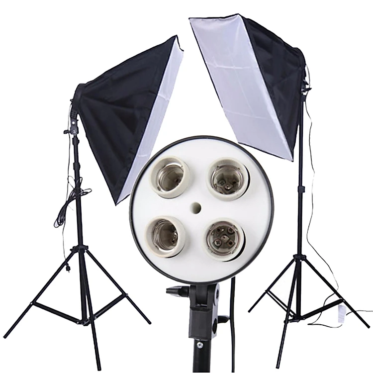 - Bộ Đèn Chụp Sản Phẩm bao gồm: 1 chân đèn cao 2m, 1 softbox tản sáng kích thước (50 x 70 cm), đui đèn 4 bóng, 1 điều khiển bằng 2 công tắc, 4 bóng đèn Tricolor 150W.