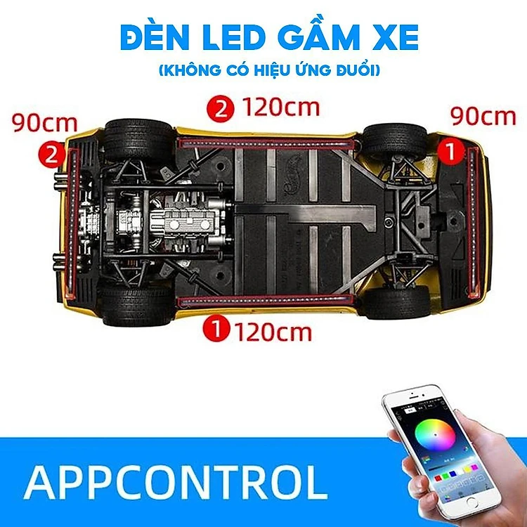 Bộ Đèn LED Gầm Xe ô tô,Dải Đèn Led RGB Điều Khiển Bằng APP Hoặc Remote Chống Nước Độ Bền Cao