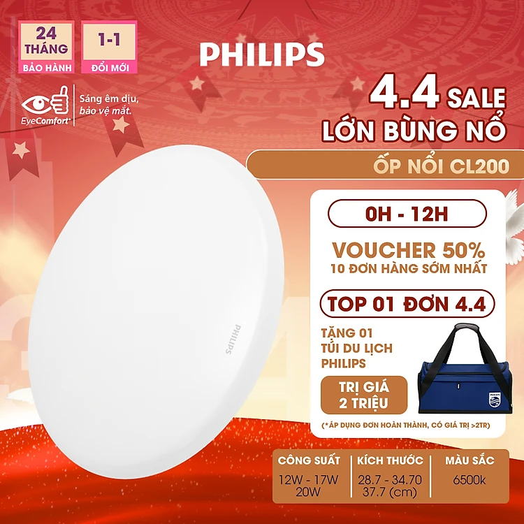 Bộ đèn PHILIPS LED ốp trần tròn CL200 - Công suất ( 6W, 10W,17W,20W) ánh sáng vàng, ánh sáng trắng