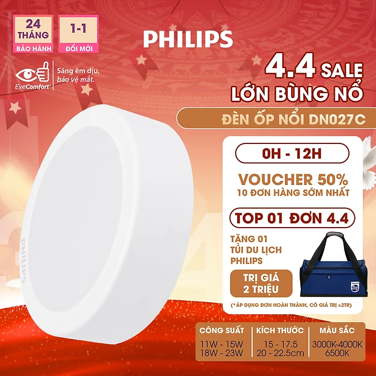 Bộ Đèn Philips LED Ốp Trần tròn lắp nổi DN027C- Công suất (11W, 15W, 18W, 23W)