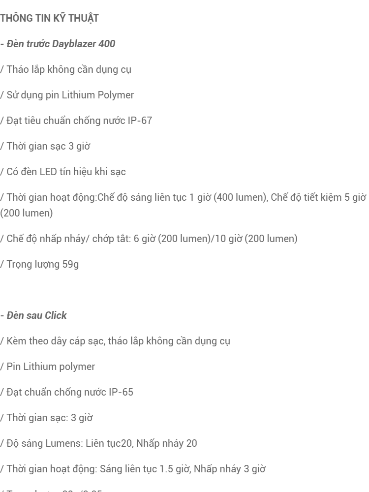 Bộ đèn xe đạp Blackburn Dayblazer 400 & Click