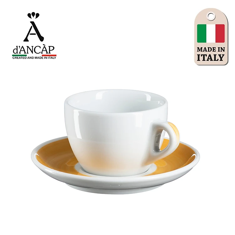 Bộ đĩa và ly sứ cà phê Ancap Cappuccino 180ml vẽ tay lên quai