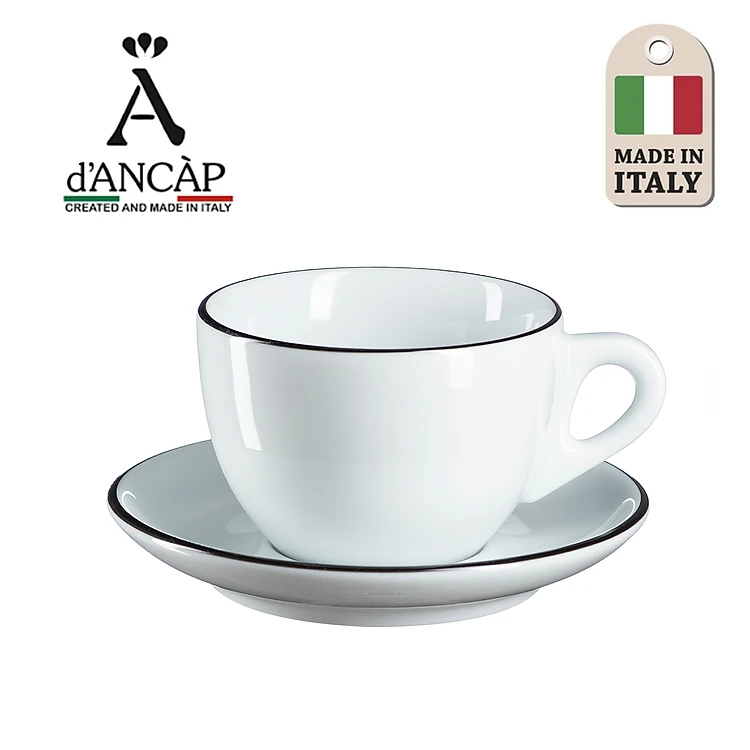 Bộ đĩa và ly sứ cà phê Ancap Latte 260ml vẽ tay lên viền