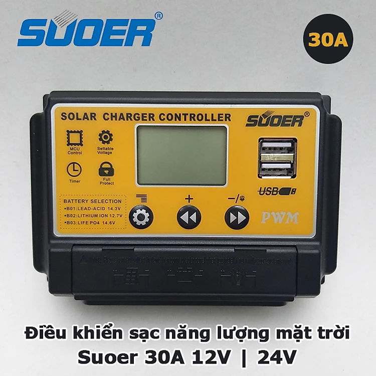 Bộ Điều Khiển Sạc Năng Lượng Mặt Trời SUOER ST-S1230 12V/24V Hàng Chính Hãng