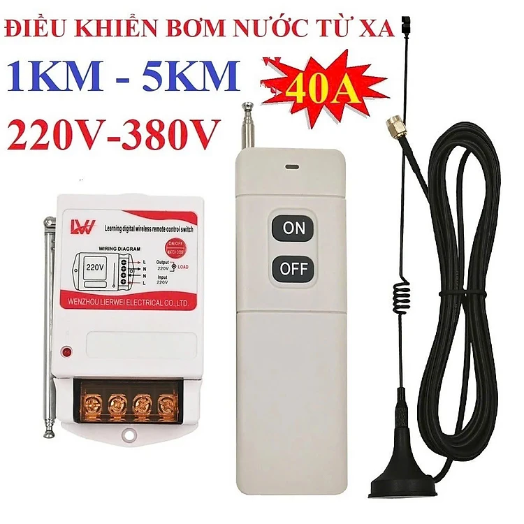 Bộ Điều Khiển Từ Xa 220V Máy Bơm Nước, Đèn – Tầm Xa 1–5KM, Công Suất Lớn 40A 3000W