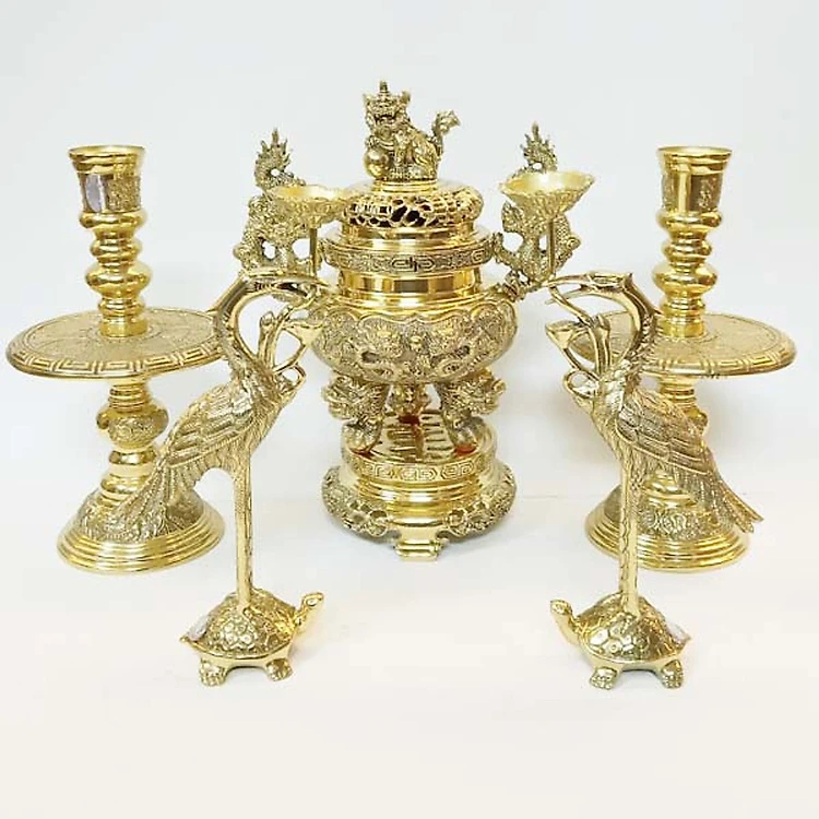 Bộ đỉnh đồng thờ cúng mini 27 cm đồng vàng bóng