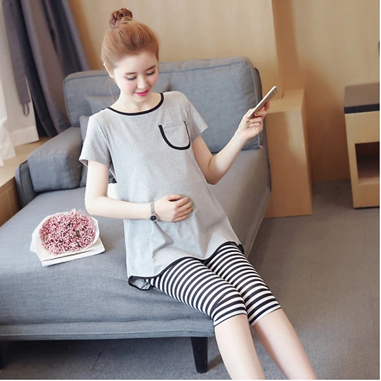 Bộ đồ bầu áo ghi xám quần kẻ trẻ trung hàngcao cấp - BN 38