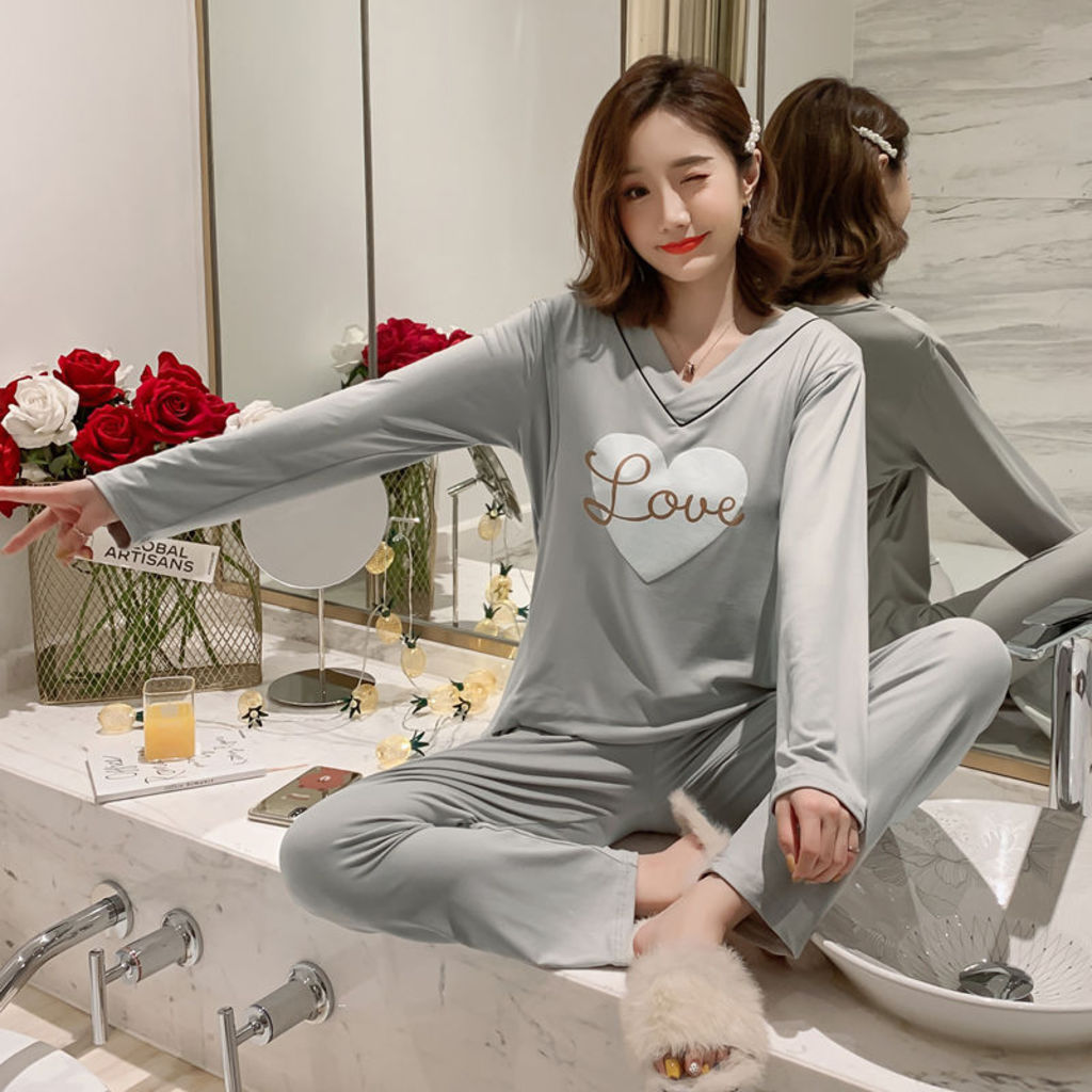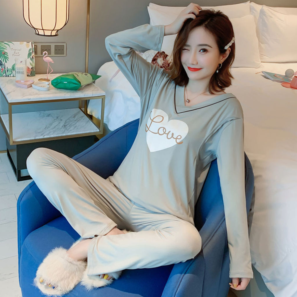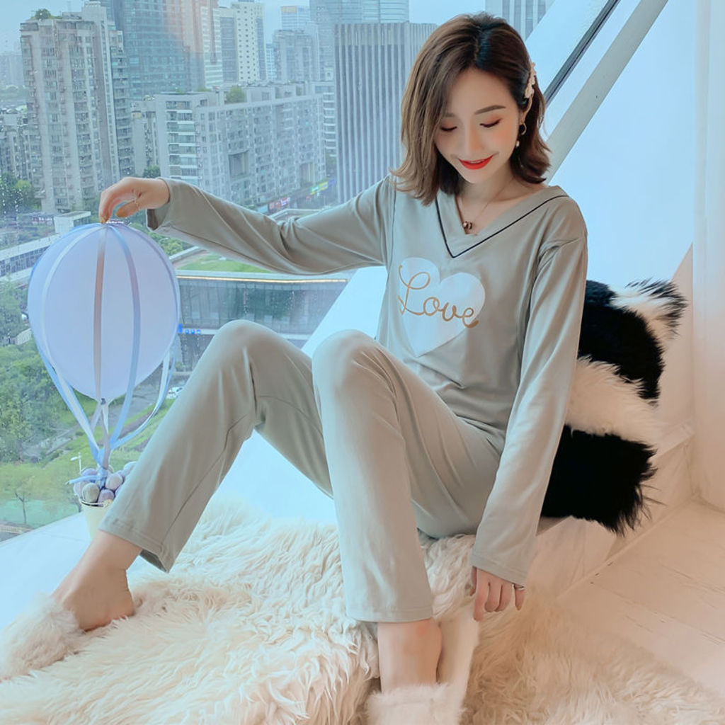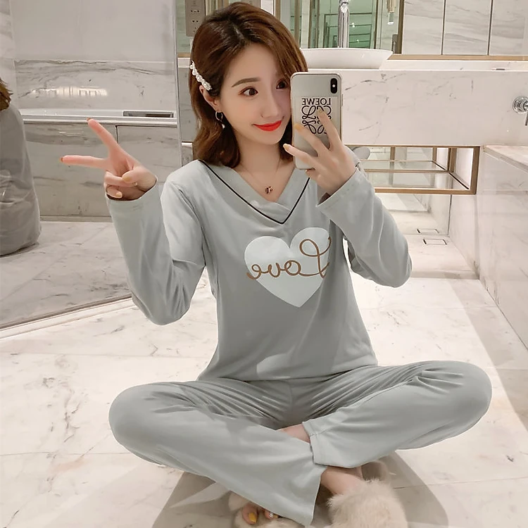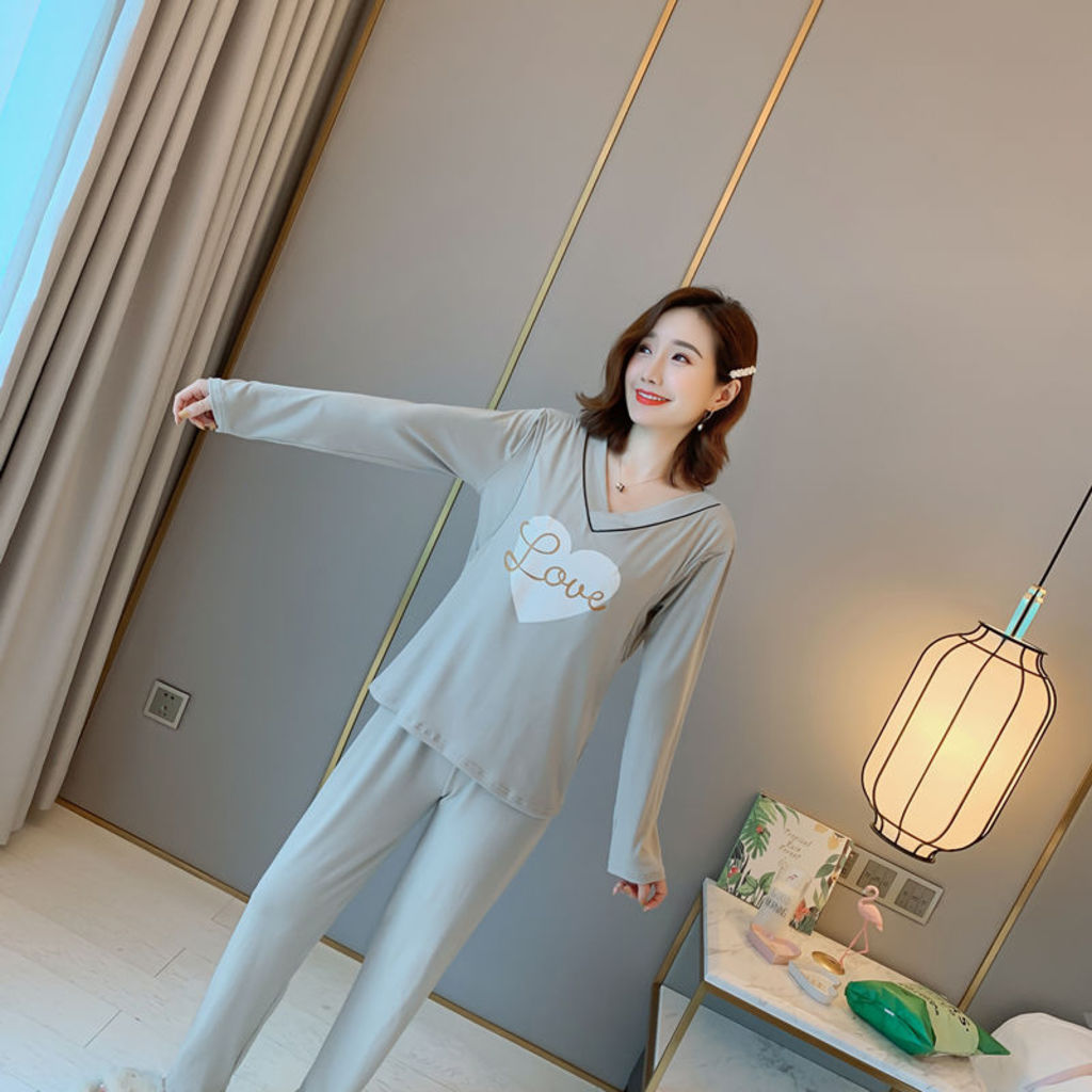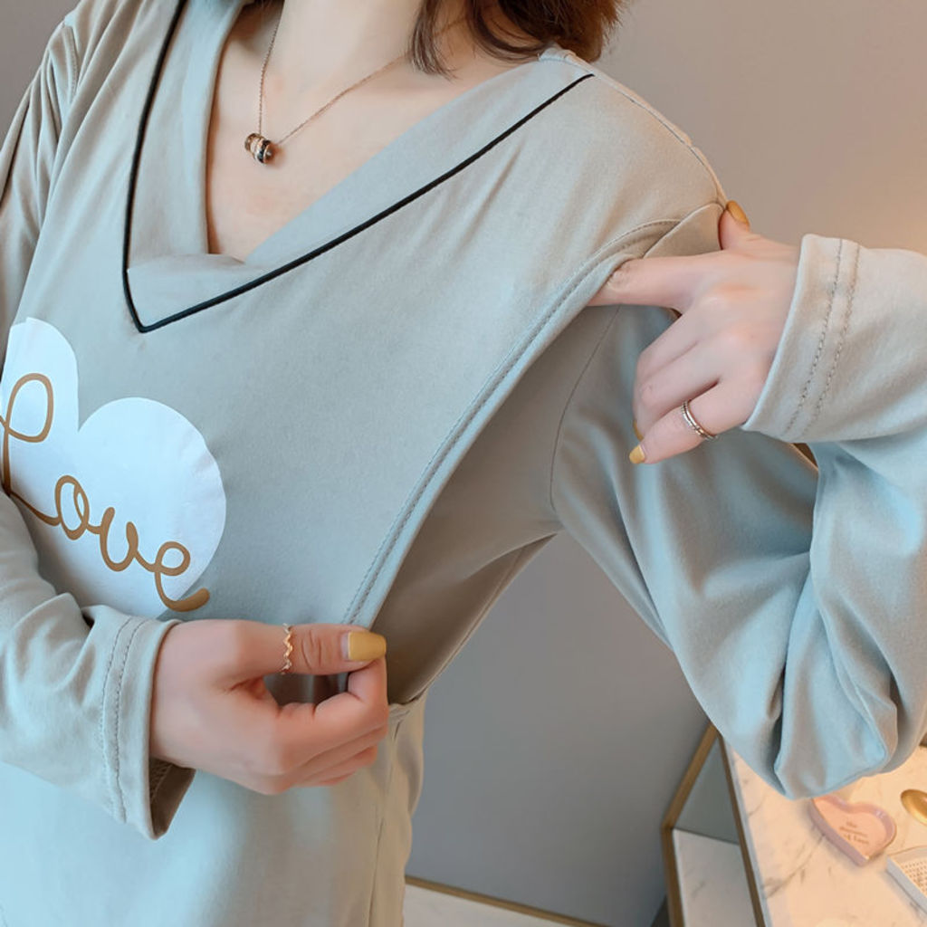 Bộ đồ bầu sau sinh cho con bú dài tay màu ghi (ảnh thật) hàng Quảng Châu