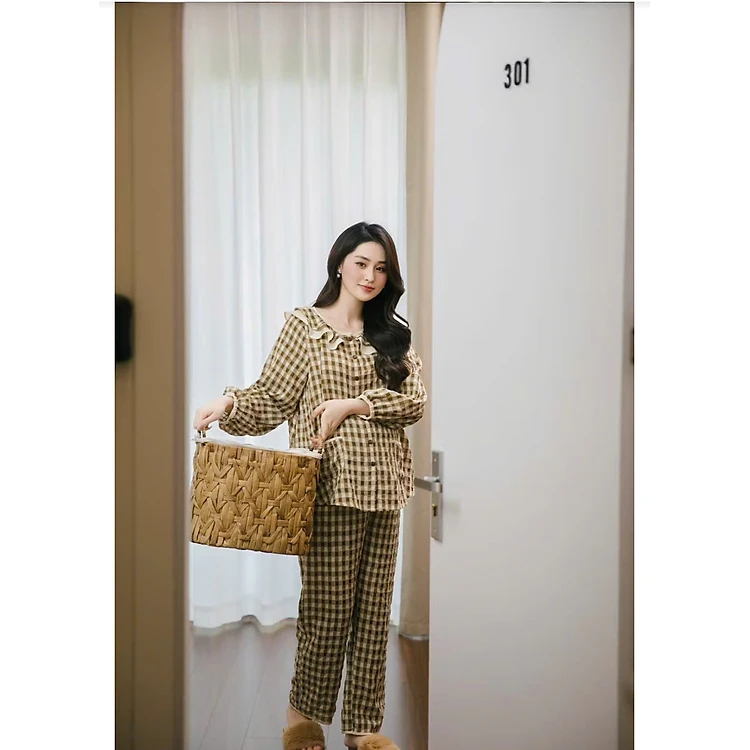 Bộ Đồ Bầu Và Sau Sinh Dài Tay Cao Cấp Azuno B68 Chất Liệu Đũi Xốp Mặc Cực Mát