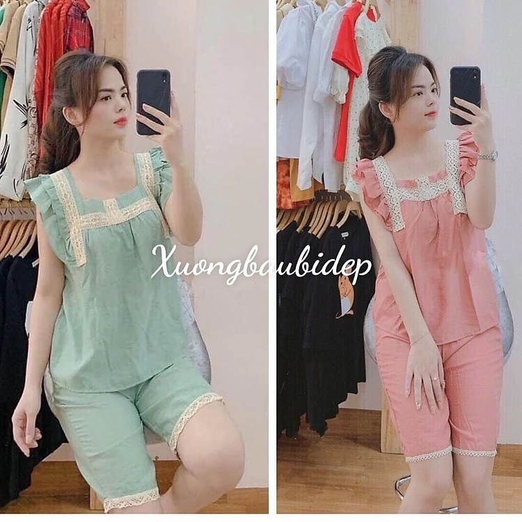 Bộ đồ bầu và sau sinh LỬNG chất đũi siêu mềm mát, đồ bộ bầu thiết kế cánh tiên viền ren sang chảnh BL830
