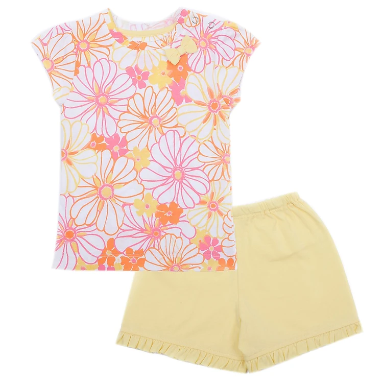 Áo in hình hoa lớn thật nổi bật, thu hút bé ngay từ ánh nhìn đầu tiên. Bộ đồ có màu vàng chủ đạo tạo vẻ tươi tắn và dễ thương cho bé gái nhà bạn.