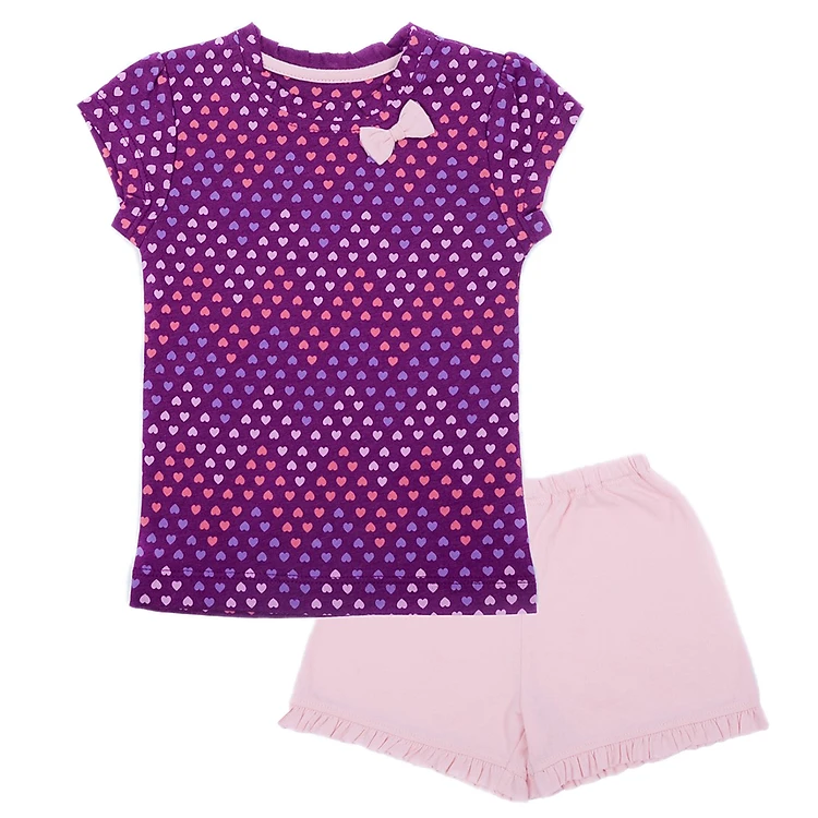 Áo được in hình tim thật đáng yêu và sinh động. Bộ đồ có màu tím chủ đạo tạo vẻ thanh lịch và duyên dáng cho bé gái khi mặc.