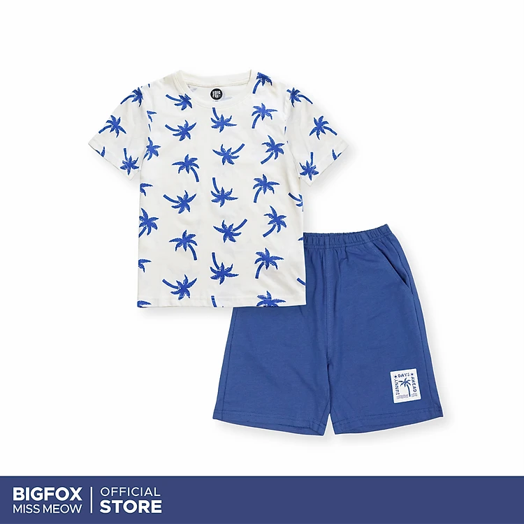 Bộ đồ bé trai ngắn tay Bigfox Miss Meow size đại mùa hè mặc nhà vải cotton cho trẻ em 3-11 tuổi 35kg