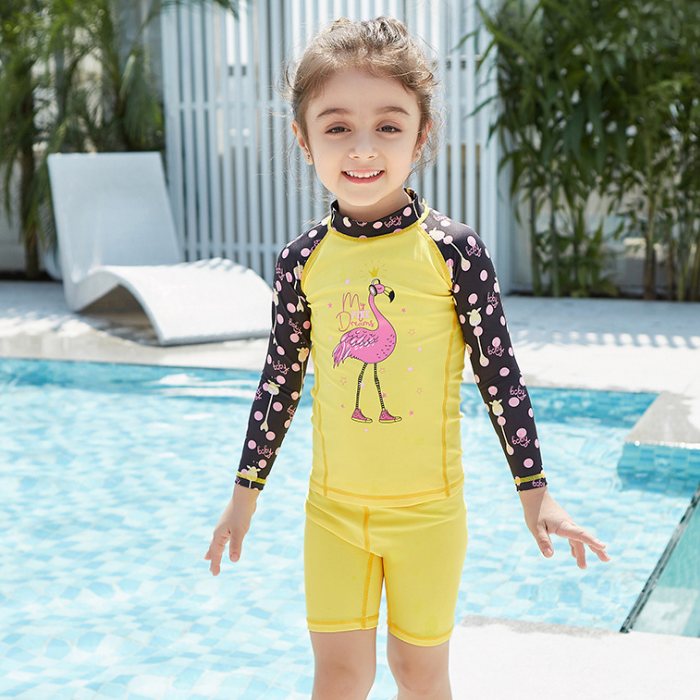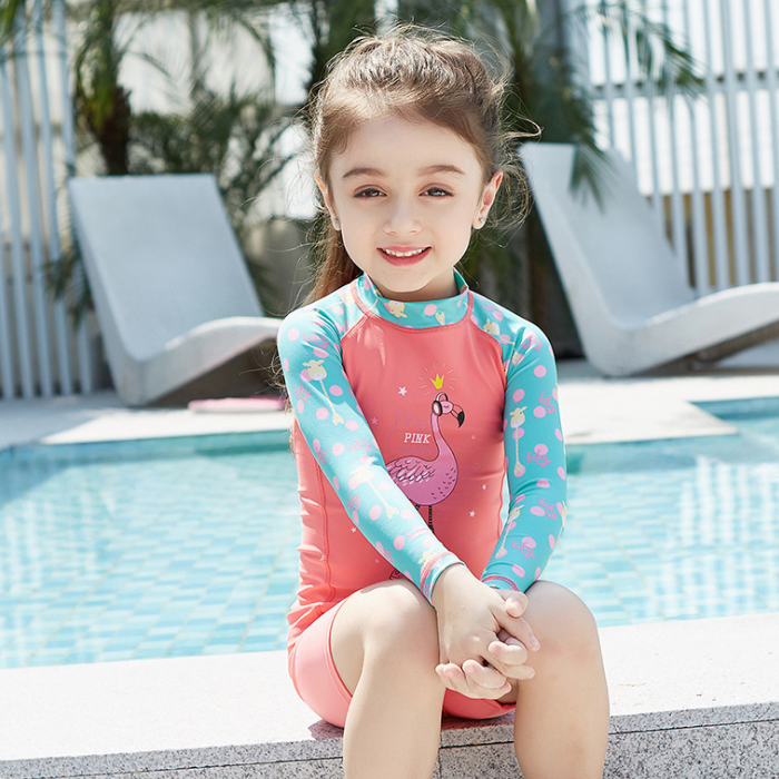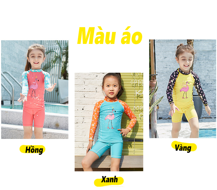 Bộ đồ bơi bé gái chống tia UV lên tới UPF 50++ , form dài tay chất vải co giãn 4 chiều cao cấp , cho bé gái cao 95 cm - 135 cm - Tặng kèm nón bơi vải