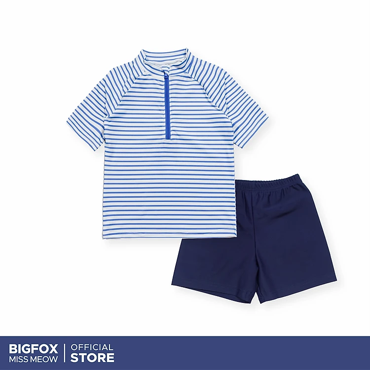 Bộ đồ bơi bé trai Bigfox Miss Meow khóa kéo mẫu áo rời, quần rời tay ngắn size đại trẻ em 11-35kg