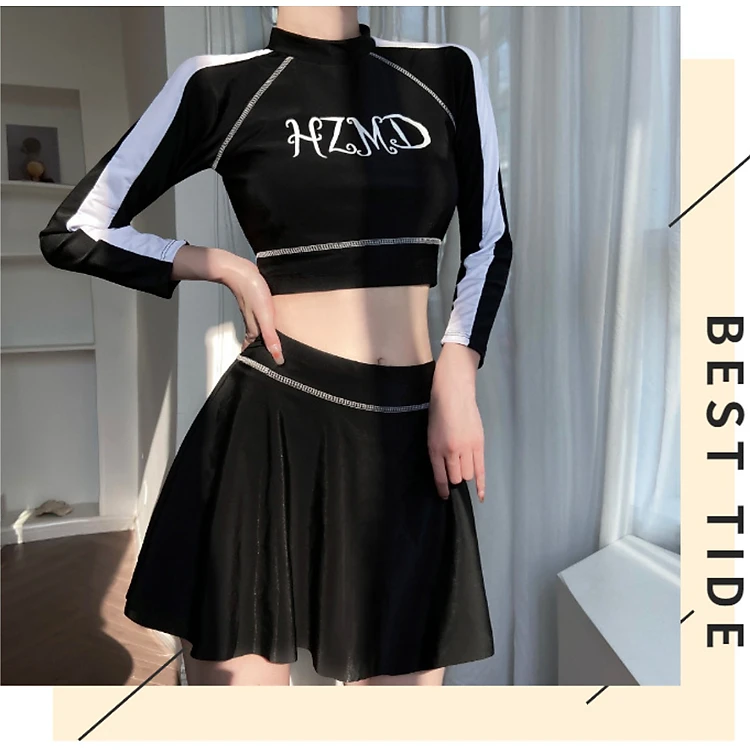 Bộ đồ bơi bikini kín đáo nữ hai mảnh đi tắm biển áo dài tay kèm váy - BB