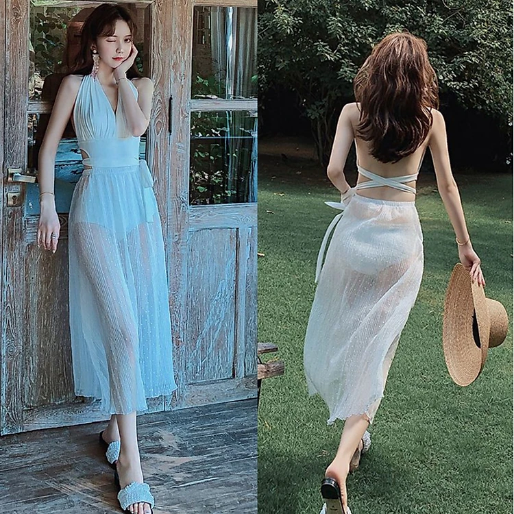 Bộ đồ bơi bikini liền thân nữ sexy quyến rũ kèm váy choàng - B44