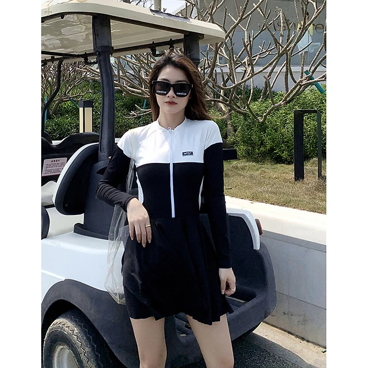Bộ đồ bơi bikini nữ 1 mảnh kín đáo đi tắm biển giấu bụng váy liền áo dài tay chống nắng - B.27