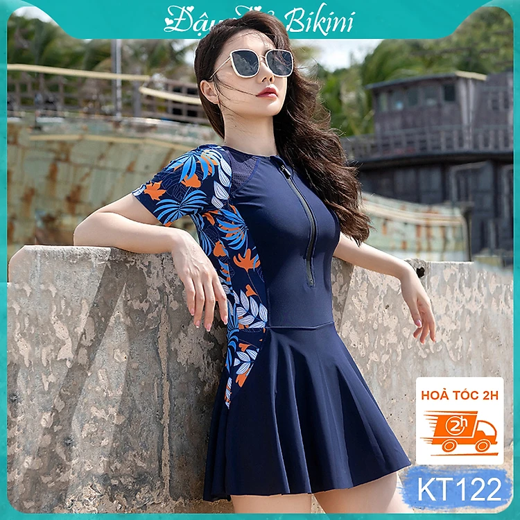 Bộ đồ bơi nữ Big Size cao cấp, áo tắm liền thân váy in hoa sang chảnh thời trang, chất thun bơi lạnh xịn co giãn cao, tôn dáng đẹp, có size nhỏ cho nữ từ 43kg | KT121