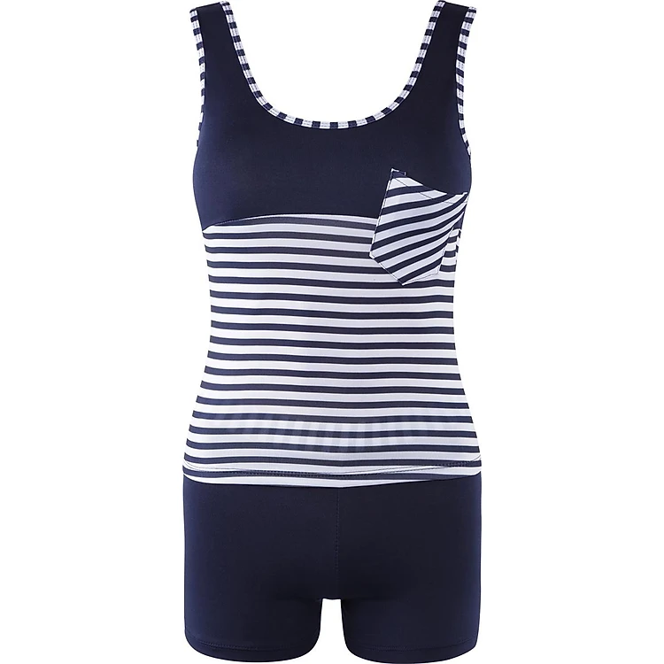 Bộ Đồ Bơi Nữ Sọc Đen Xanh Morie Fashon là sự kết hợp giữa phong cách thể thao khoẻ khoắn và phong cách gợi cảm quyến rũ. Mang lại cho bạn vẻ ngoài sexy nhưng không kém phần năng động. Họa tiết sọc tinh tế, mới lạ mang lại nét cá tính riêng cũng như phong cách thời trang cho người diện. Áo được gắn với một lớp lót ngực, giúp nâng đỡ vòng một mà không cần phải mặc áo ngực, cho bạn an tâm khi sử dụng. Mẫu thiết kế giúp che đi những khuyết điểm và tôn lên được những nét đẹp của cơ thể.