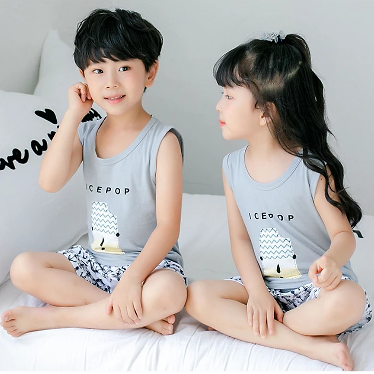 Bộ đồ cho bé trai hình thú chất liệu thun cotton tháng mát 104-Trai