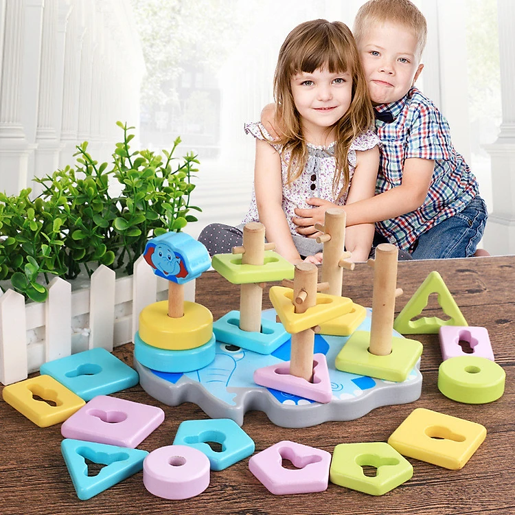 Bộ đồ chơi bằng gỗ thả hình khối vào cột zíc zắc cho bé vui chơi, rèn luyện phản xạ và tư duy thông minh